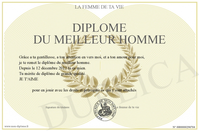 Envoyez par email votre Diplôme du meilleur homme personalisé