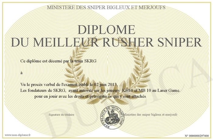 Envoyez par email votre diplôme du meilleur rusher sniper personalisé