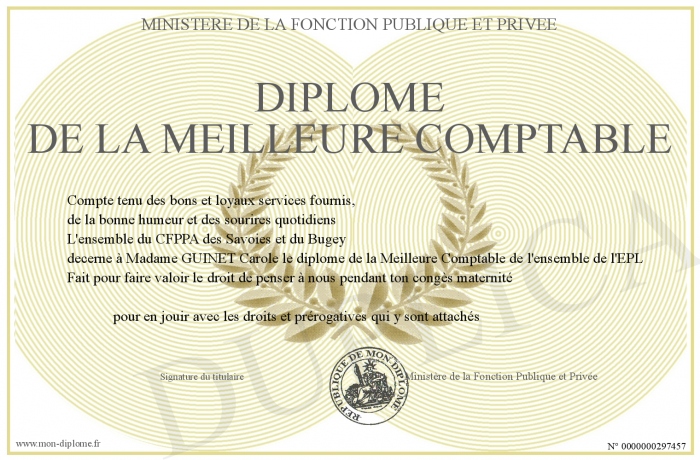 Envoyez par email votre Diplôme de la Meilleure Comptable personalisé