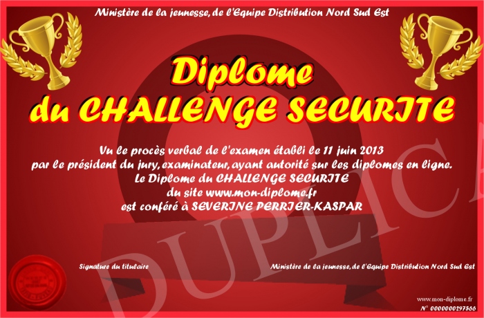 Envoyez par email votre Diplôme du CHALLENGE SECURITE personalisé