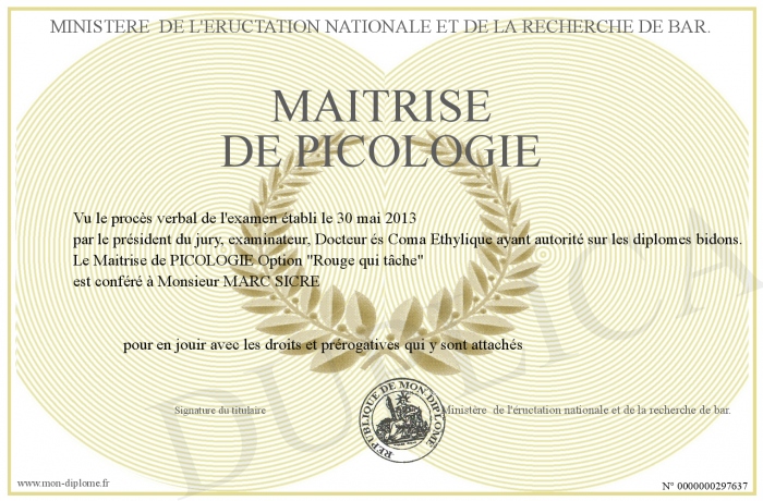 Envoyez par email votre Maitrise de PICOLOGIE personalisé