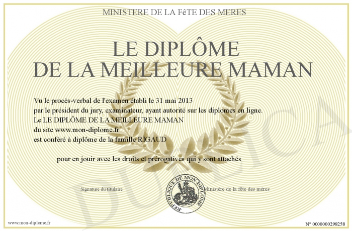 Envoyez par email votre LE DIPLÔME DE LA MEILLEURE MAMAN personalisé