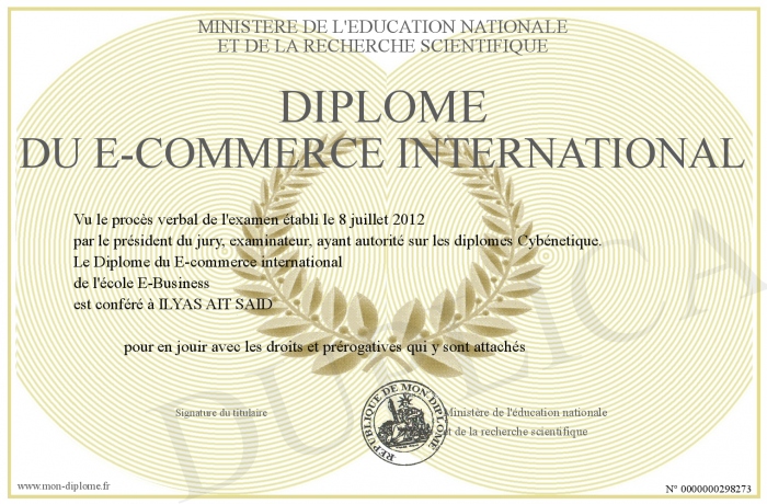 Envoyez par email votre Diplôme du E-commerce international personalisé