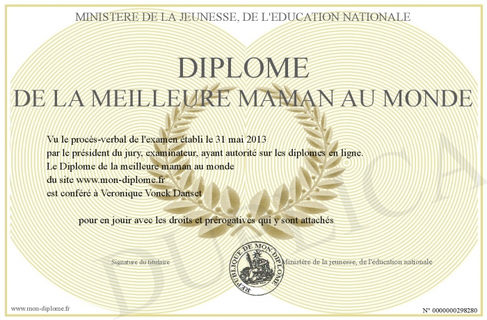 Envoyez par email votre Diplôme de la meilleure maman au monde personalisé