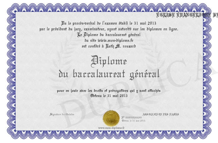 Envoyez par email votre Diplôme du baccalaureat général personalisé