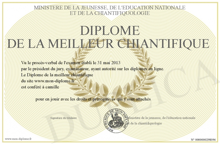 Envoyez par email votre Diplôme de la meilleur chiantifique personalisé