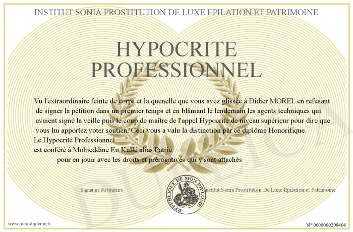 Envoyez par email votre Hypocrite Professionnel personalisé