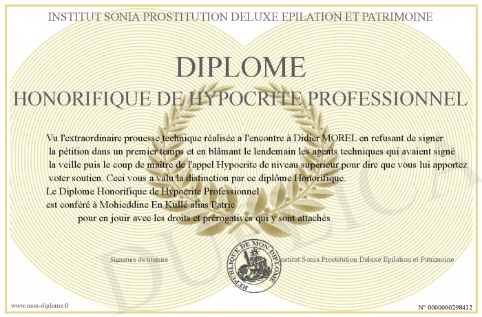 Envoyez par email votre Diplôme Honorifique de Hypocrite Professionnel personalisé