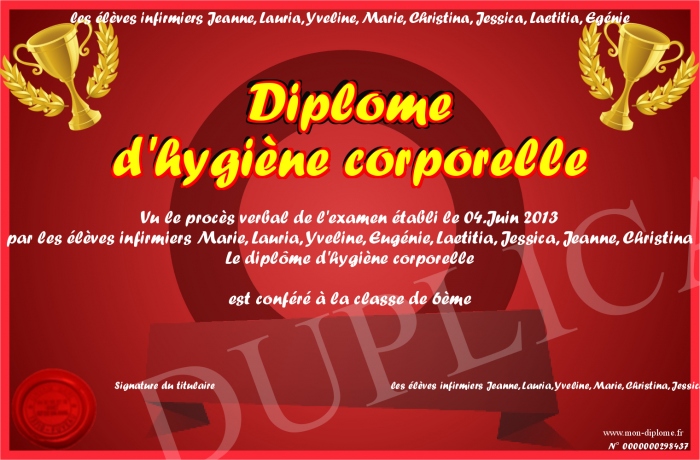Envoyez par email votre Diplôme d'hygiène corporelle personalisé