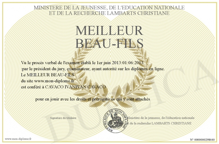 Envoyez par email votre MEILLEUR BEAU-FILS personalisé