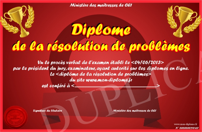 Envoyez par email votre Diplôme de la résolution de problèmes personalisé