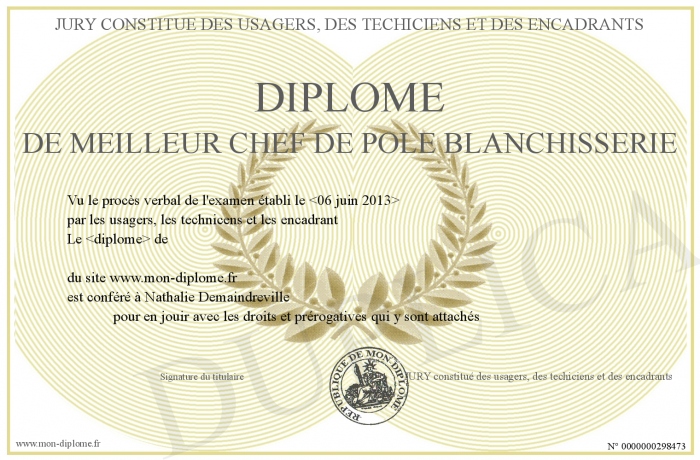 Envoyez par email votre Diplôme de Meilleur Chef De Pôle Blanchisserie personalisé