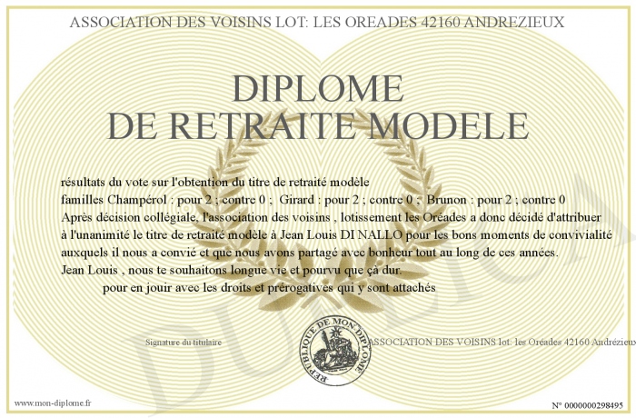 Envoyez par email votre Diplôme de retraité modèle personalisé