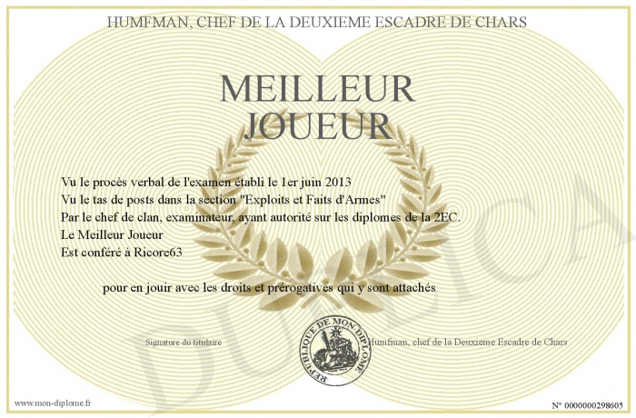 Envoyez par email votre Meilleur Joueur personalisé