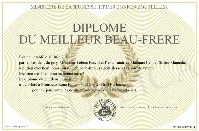 Envoyez par email votre Diplôme du meilleur beau-frère personalisé