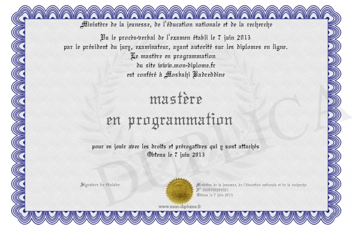 Envoyez par email votre mastère en programmation personalisé