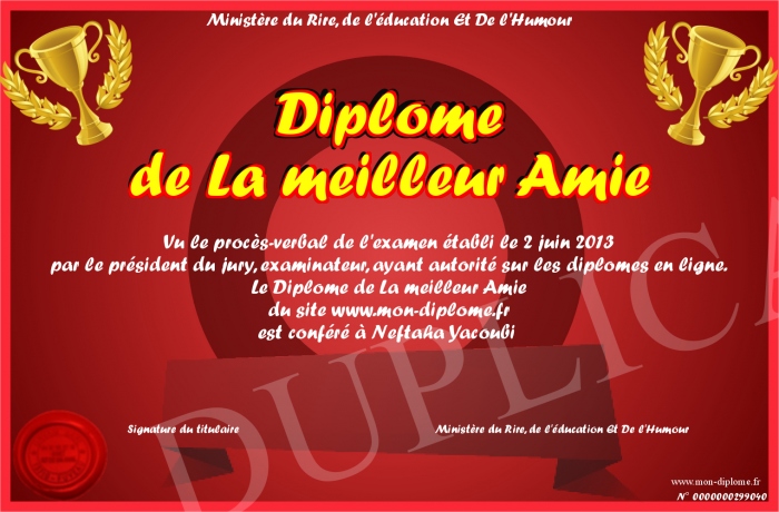 Envoyez par email votre Diplôme de La meilleur Amie personalisé