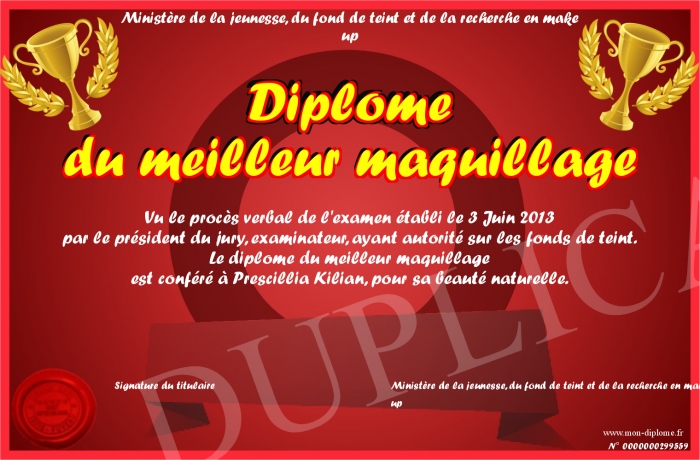 Envoyez par email votre Diplôme du meilleur maquillage personalisé