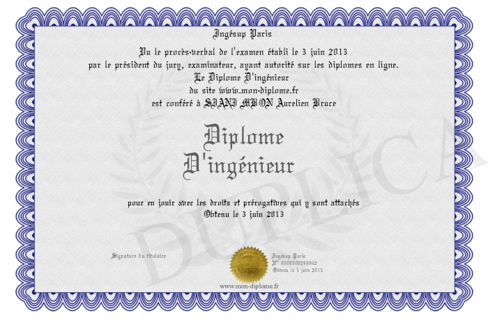 Envoyez par email votre Diplome D'ingénieur personalisé