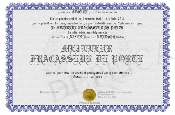 Envoyez par email votre MEILLEUR FRACASSEUR DE PORTE personalisé