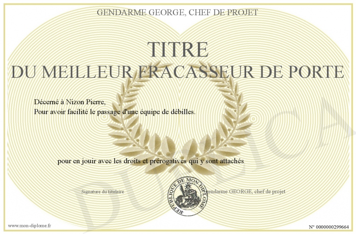 Envoyez par email votre TITRE DU MEILLEUR FRACASSEUR DE PORTE personalisé