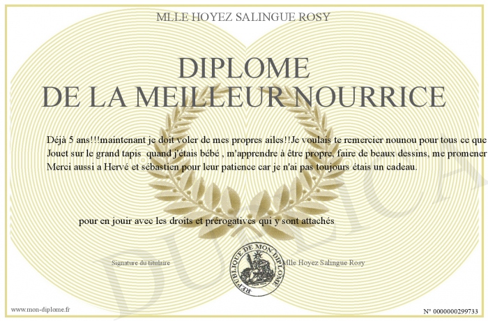 Envoyez par email votre diplôme de la meilleur nourrice personalisé
