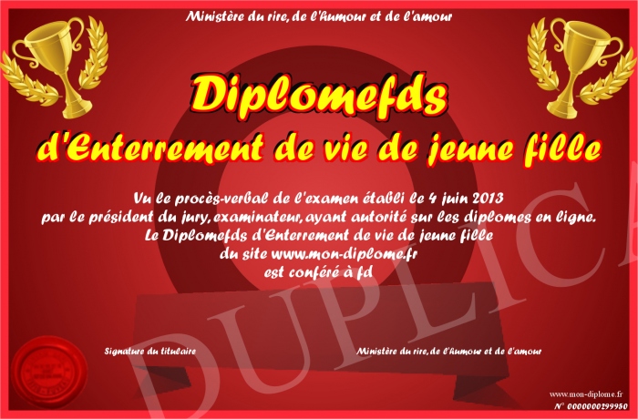 Envoyez par email votre Diplomefds d'Enterrement de vie de jeune fille personalisé