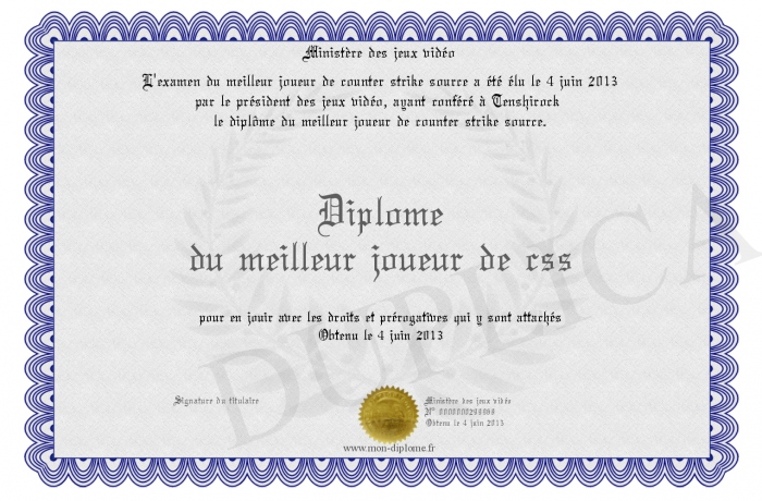 Envoyez par email votre Diplôme du meilleur joueur de css personalisé
