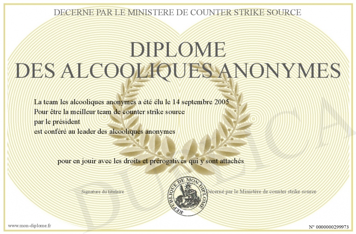 Envoyez par email votre Diplôme Des alcooliques anonymes personalisé