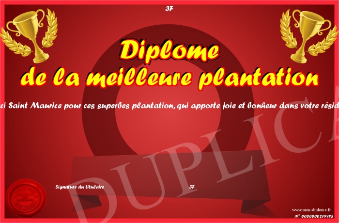 Envoyez par email votre Diplôme de la meilleure plantation personalisé