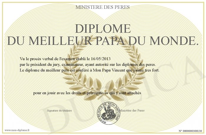 Envoyez par email votre Diplôme du meilleur papa du monde. personalisé