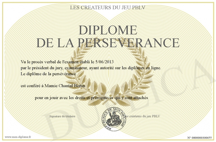 Envoyez par email votre Diplôme de la persévérance personalisé