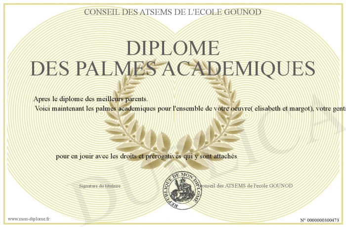 Envoyez par email votre Diplôme des palmes academiques personalisé