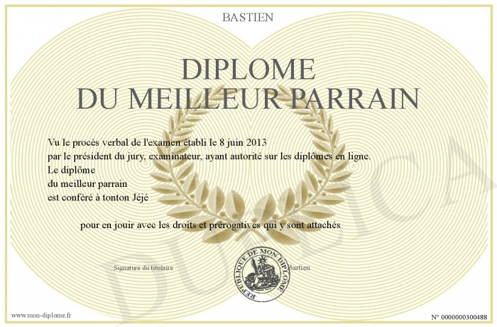 Envoyez par email votre Diplôme du meilleur parrain personalisé