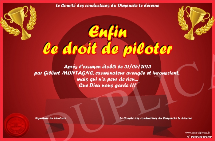 envoyé par le Le Comité des conducteurs du Dimanche te décerne !