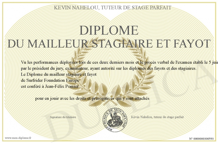 Envoyez par email votre Diplôme du mailleur stagiaire et fayot personalisé