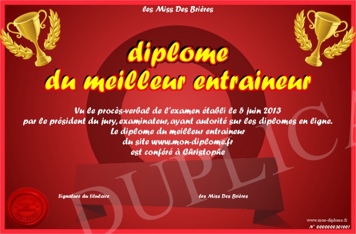 Envoyez par email votre diplôme du meilleur entraineur personalisé