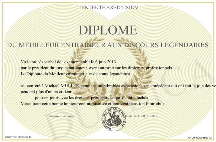 Envoyez par email votre Diplome du Meuilleur entraineur aux discours légendaires personalisé