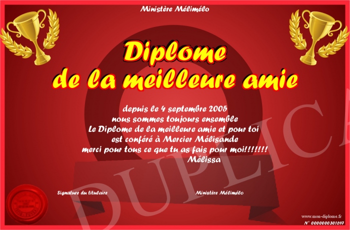 Envoyez par email votre Diplôme de la meilleure amie personalisé