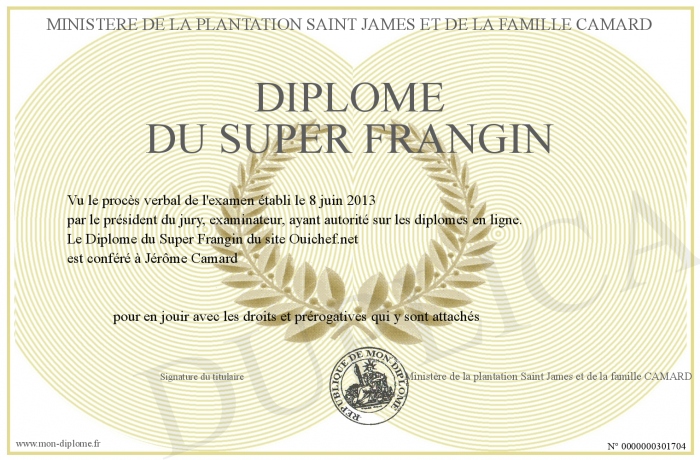 Envoyez par email votre Diplôme du Super Frangin personalisé
