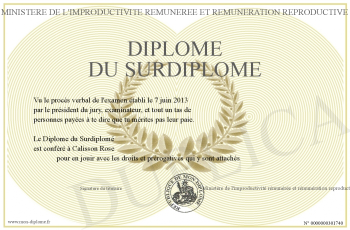 Envoyez par email votre Diplôme du Surdiplomé personalisé