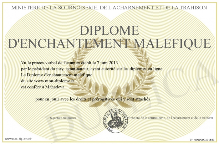 Envoyez par email votre Diplôme d'enchantement maléfique personalisé