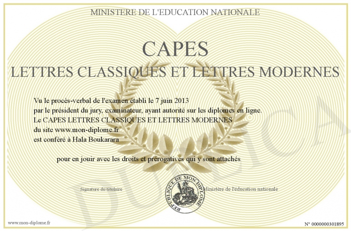Envoyez par email votre CAPES LETTRES CLASSIQUES ET LETTRES MODERNES personalisé