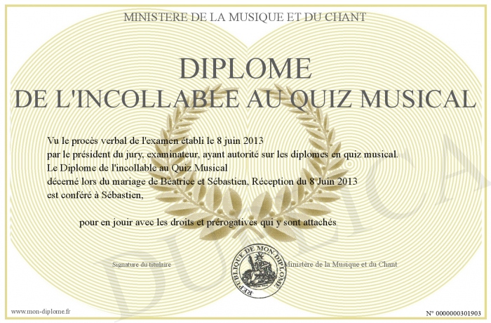 Envoyez par email votre Diplôme de l'incollable au Quiz Musical personalisé