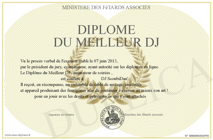 Envoyez par email votre Diplôme du meilleur Dj personalisé