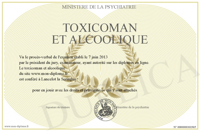 Envoyez par email votre toxicoman et alcoolique personalisé