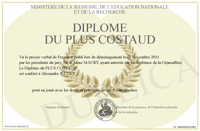 Envoyez par email votre Diplôme du PLUS COSTAUD personalisé