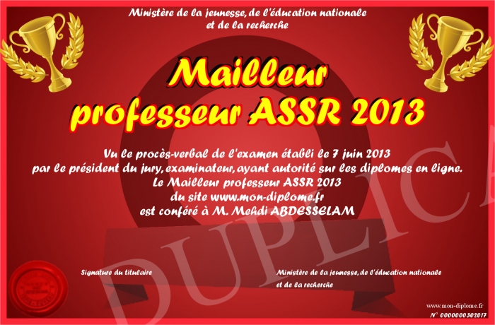 Envoyez par email votre Mailleur professeur ASSR 2013 personalisé