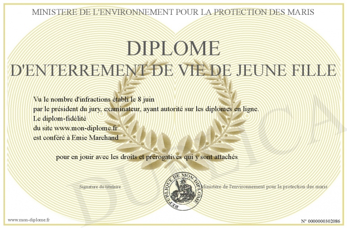 Envoyez par email votre Diplôme d'enterrement de vie de jeune fille personalisé