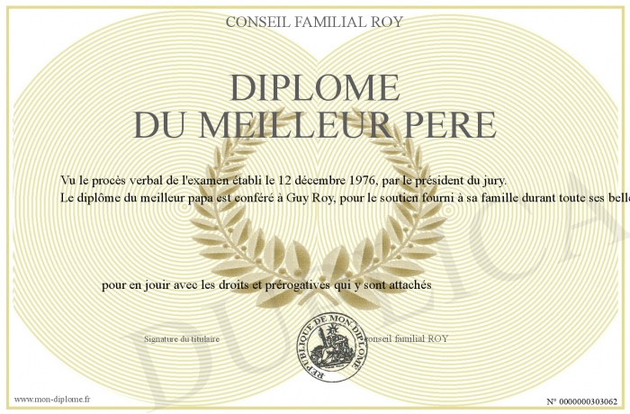 Envoyez par email votre Diplôme du meilleur père personalisé